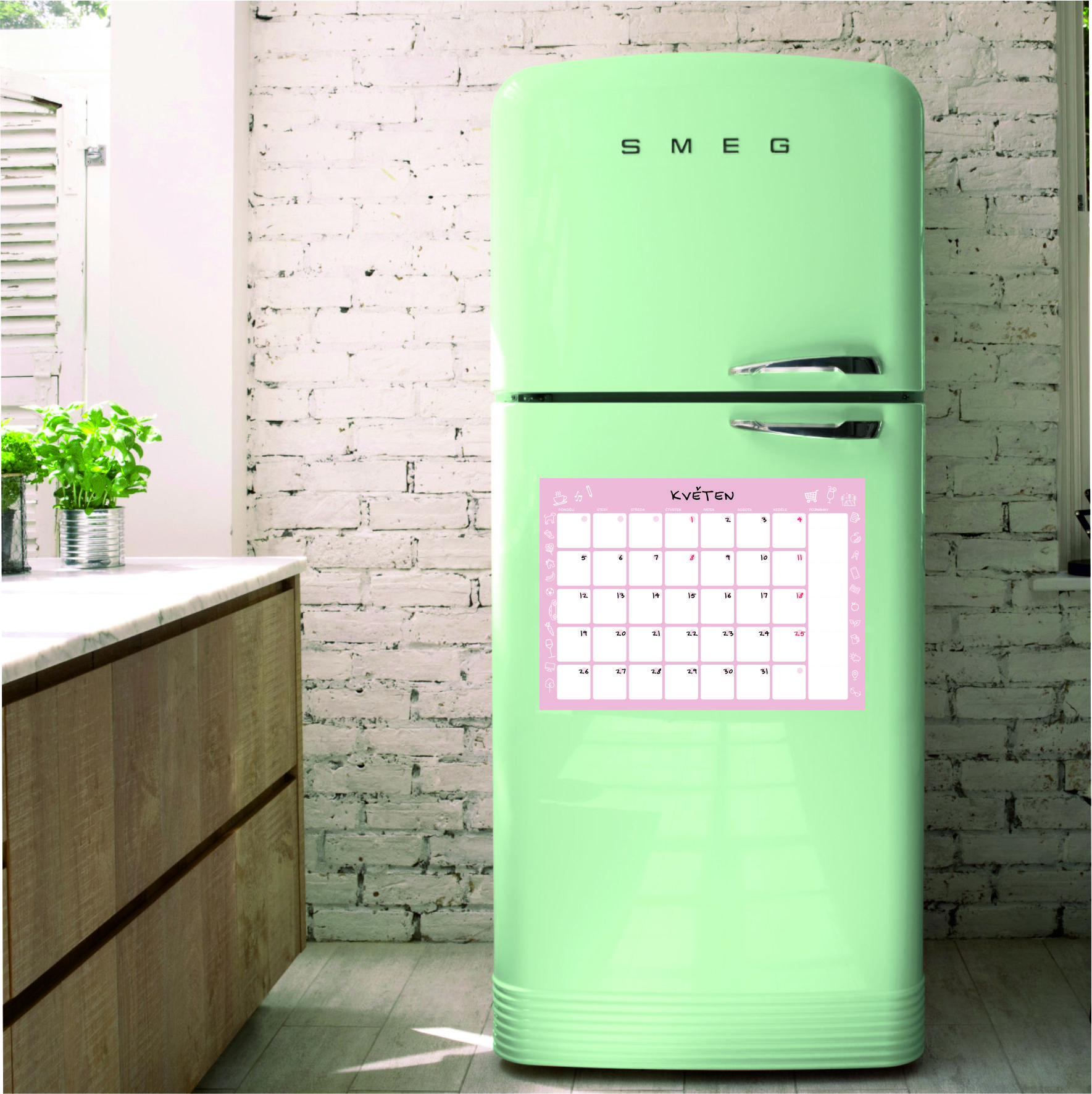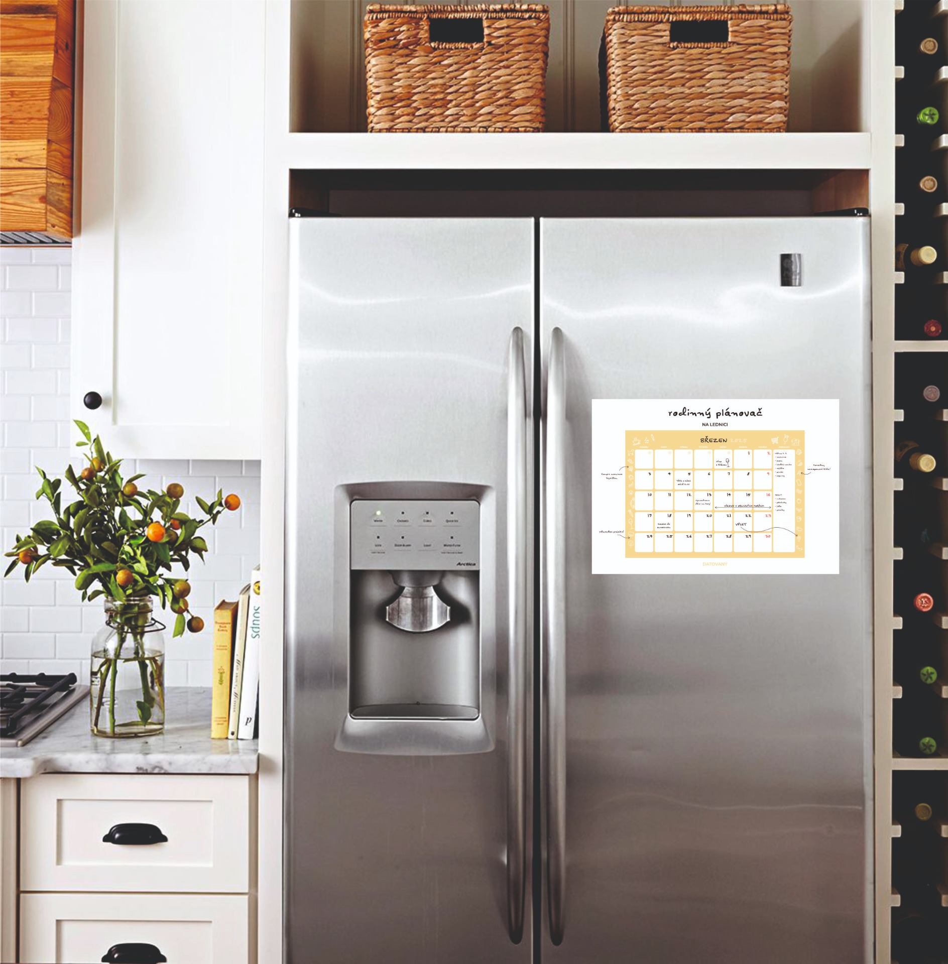 Magnetický rodinný plánovač na lednici - datovaný